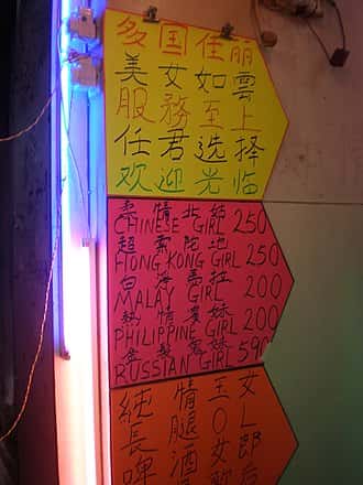 Many mainland girls advertise their services on websites where they put their pictures, contact numbers and service charges. The youngest and most attractive may offer their services to customers at three- or four-star hotels and provide their services there; their own accommodation is less likely to be of this quality, but usually within a walk or short ride away from the main clusters of hotels, to which they are led to by their pimps, known locally as "grooms".