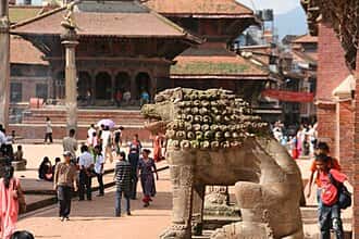 Patan is a one of the largest cities in Nepal and is located just across the Bagmati river from Kathmandu. Confusingly, it is also known as Lalitpur, both names deriving from the Sanskrit "Lalitapattan". Like its larger neighbor, Patan also boasts a Durbar Square full of temples, statues, and palaces and, in addition, has the must-see attraction of Patan Museum.